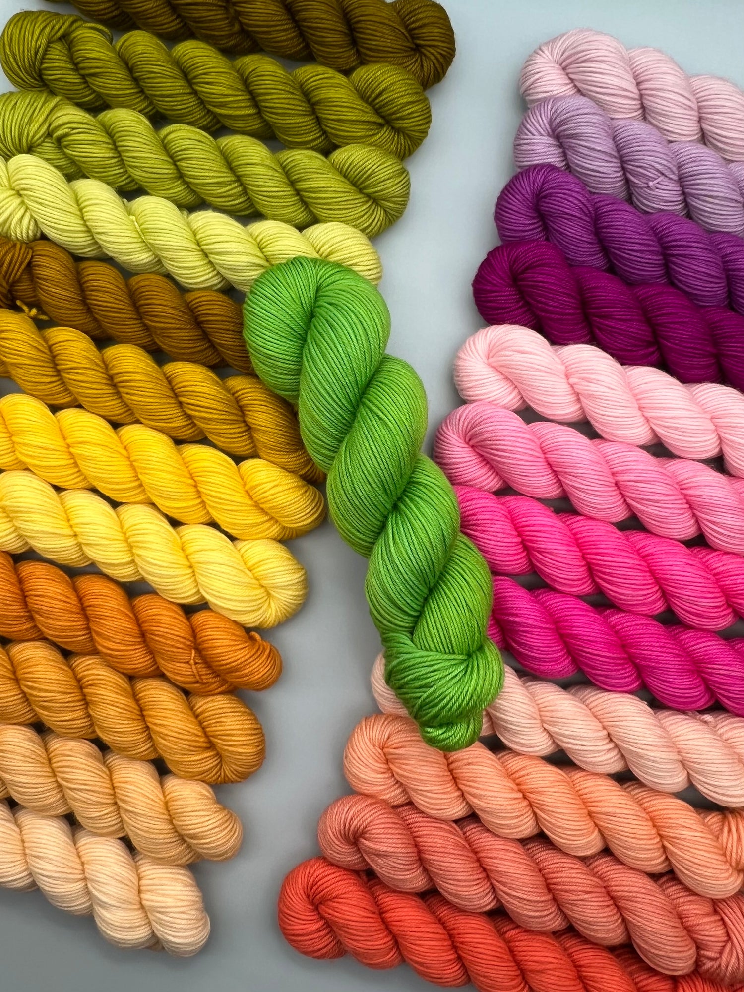 All skeins are dyed specifically for you after you make your order, on whatever yarn base and quantity of skeins you want! This ensures dye-lot consistency and no waiting for me to fill the shop with what you're craving. Just order exactly as you would, and I custom dye it within about a week and ship to you! Simple as that.