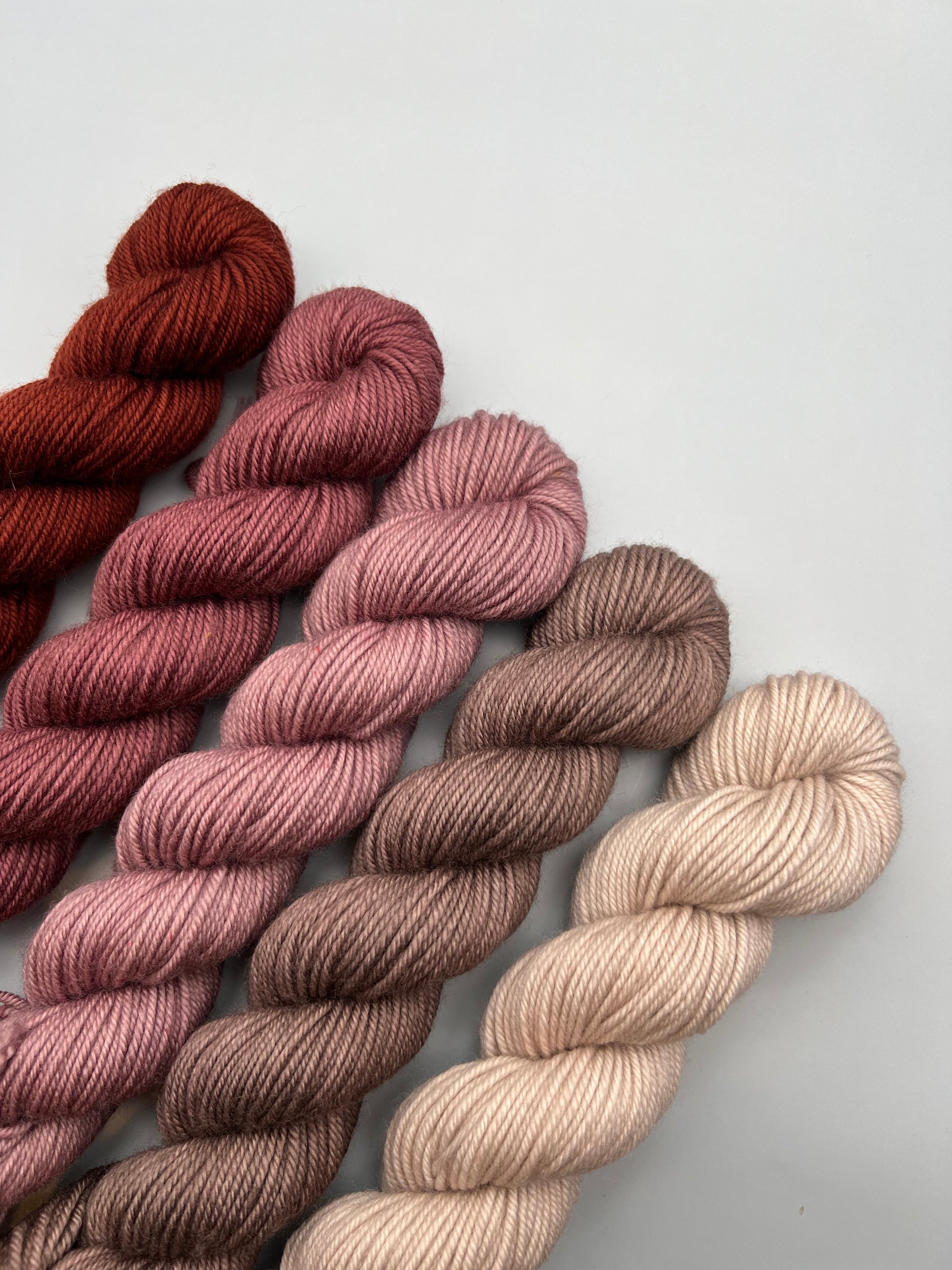 *Colorway Note for Harmless Hickey* the price is reduced on this months kit because a dye in this colorway splits to fleck red/yellow on some skeins, albeit very faintly. It’s unpredictable and unavoidable, unfortunately. For this reason, you’re saving $$$ when you buy this colorway. So sorry this slipped by me before solidifying this collection. Still love this colorway regardless and I will die on this hill lol.